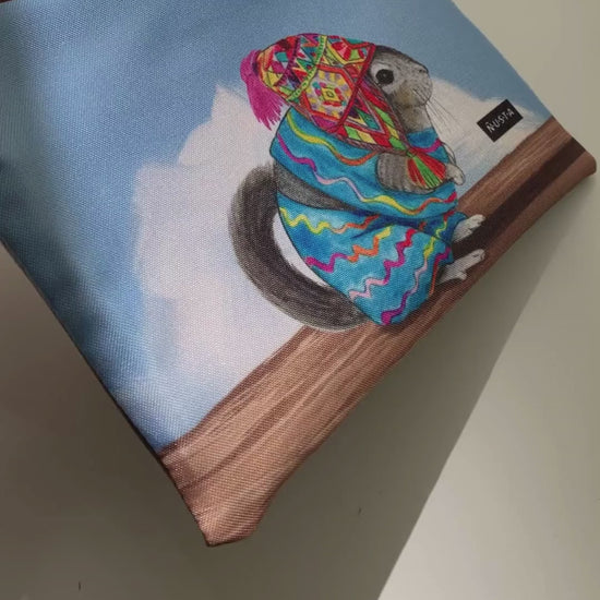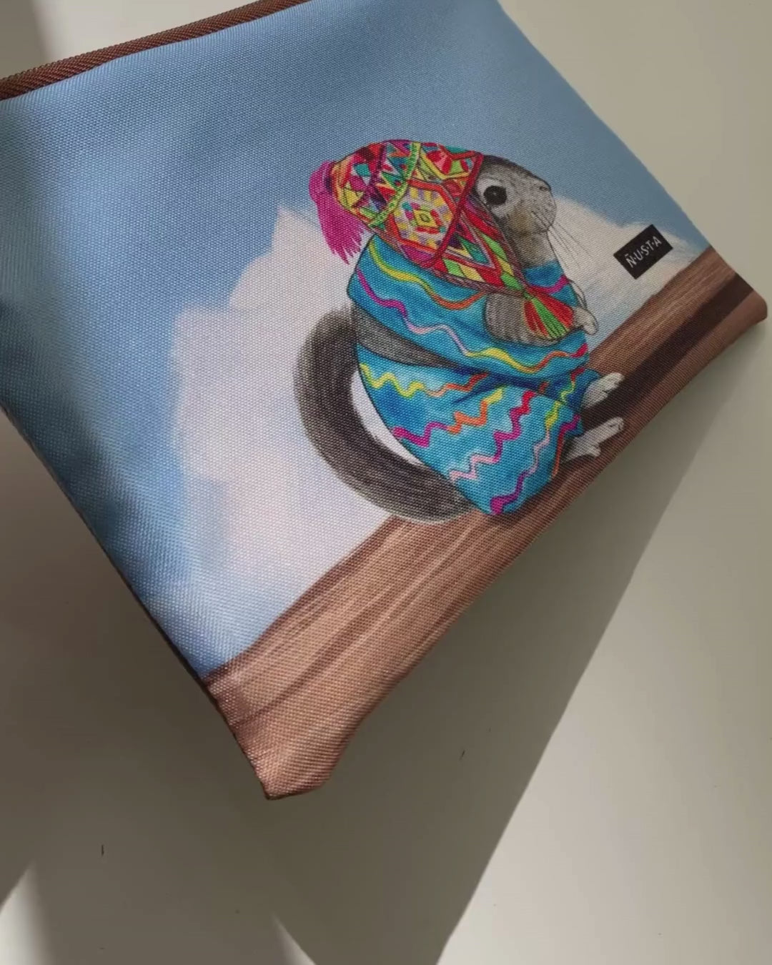 Materiales: Lona estampada, forro interior y reverso ecocuero biodegradable.