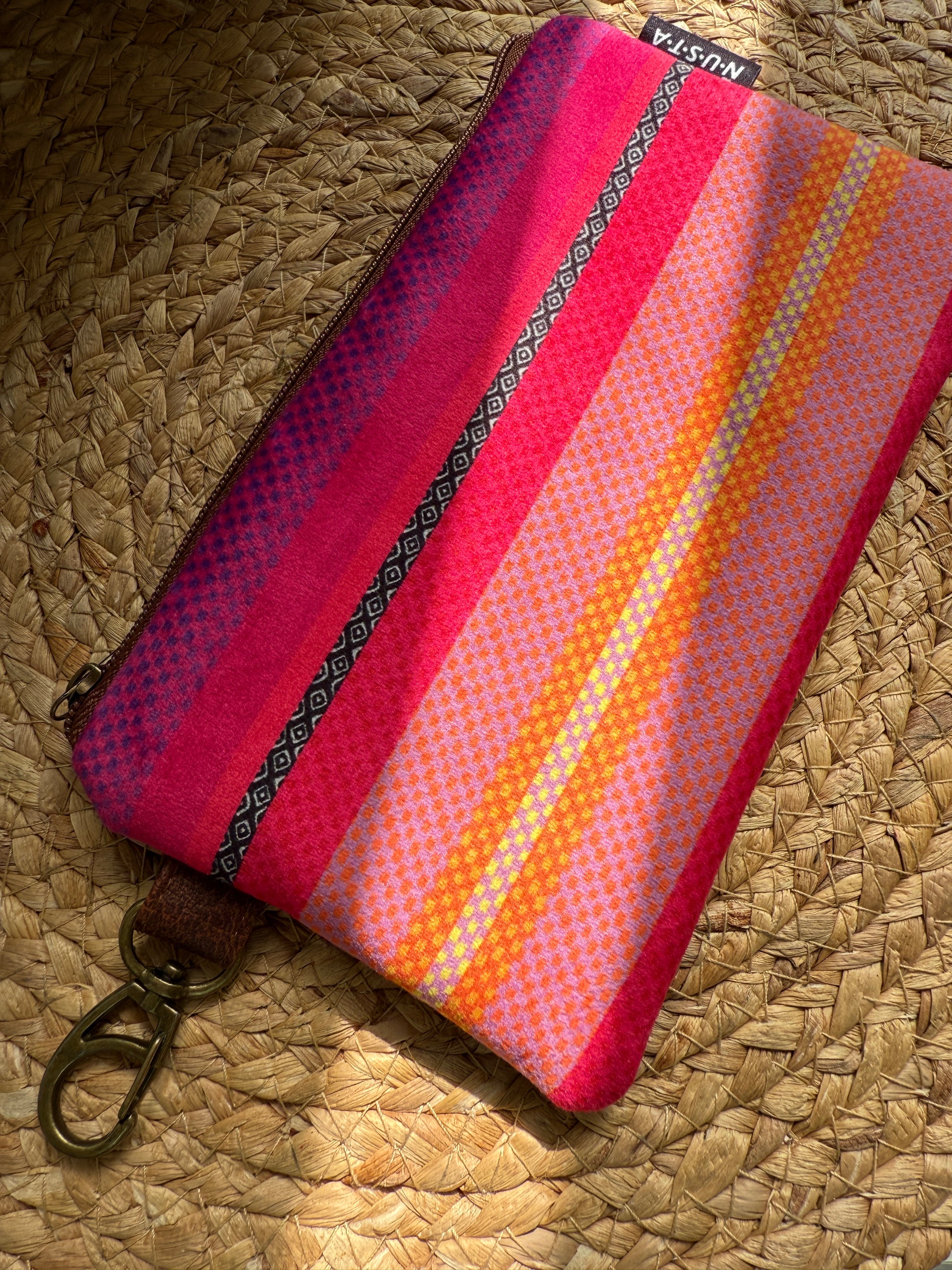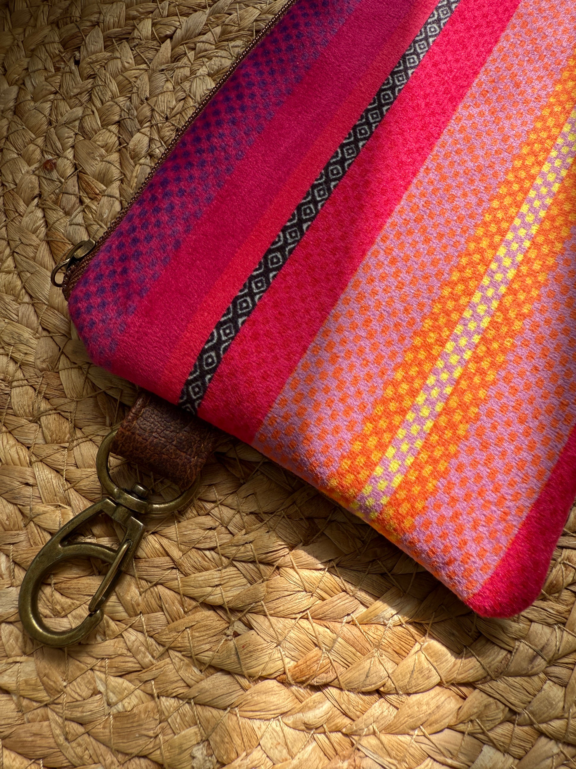 Arte y tradición en tus manos. ✨ Este estuche no es solo un accesorio, es una pieza de diseño único. El patrón fue ilustrado digitalmente por Alex Portocarrero e inspirado en la iconografía del Aguayo andino, y estampado sobre una suave felpa premium.