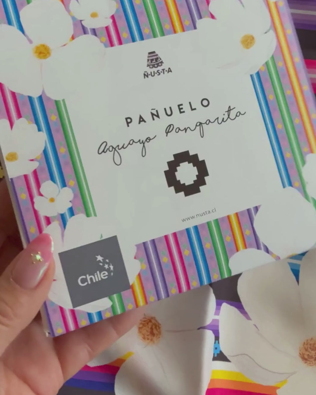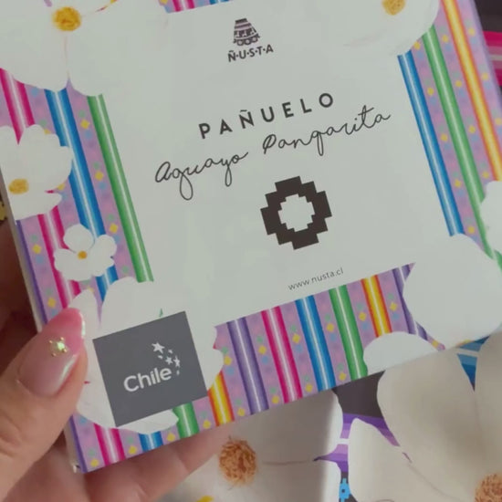 Pangarita que significa "pequeña flor" en lengua Aymara, es la decoración que adorna nuestro pañuelo con la delicada flor Pata de Guanaco (Cistanthe grandiflora) que se encuentra en el desierto de Atacama desde la Región de Antofagasta hasta la región de Coquimbo.