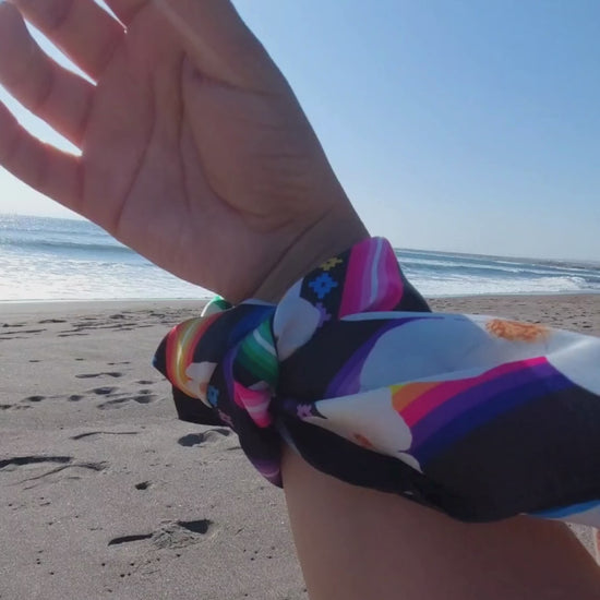 Su tela es de textura liviana y tacto satinado y suave, parecida a la seda. Está hecha a partir de botellas de plástico recicladas (RePET) e impresa con tintas ecoamigables. Nos basamos en la producción sustentable, ecológica y respetuosa con el medioambiente.