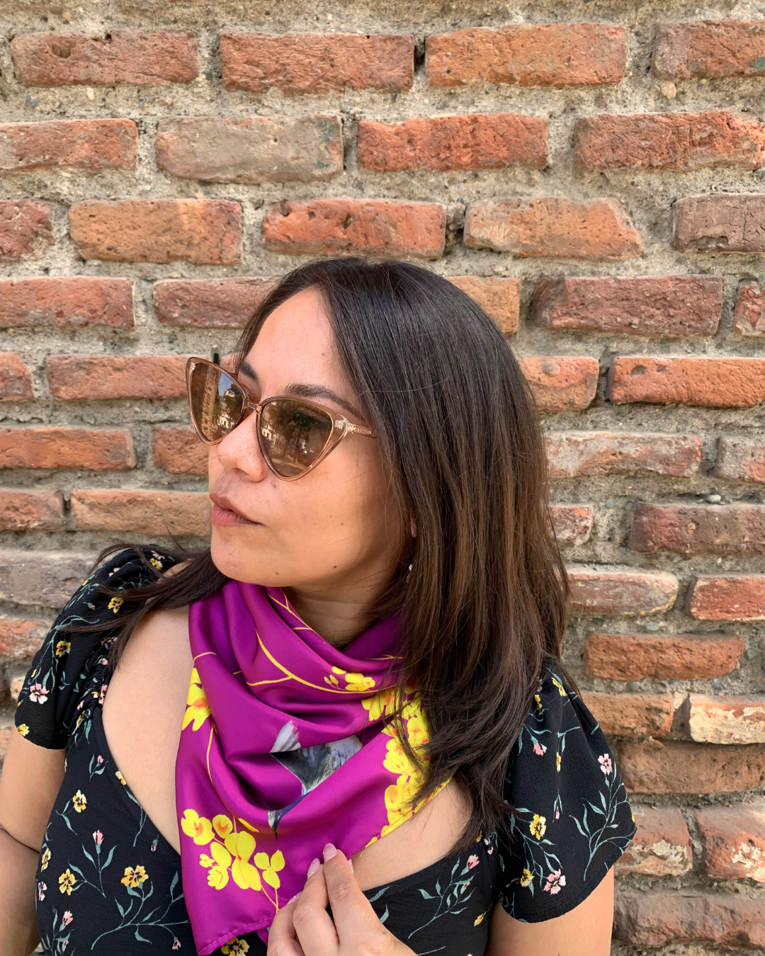 Dimensiones: 70 x 70 cm | El dobladillo de este pañuelo está hecho a mano, por lo que las medidas pueden variar.