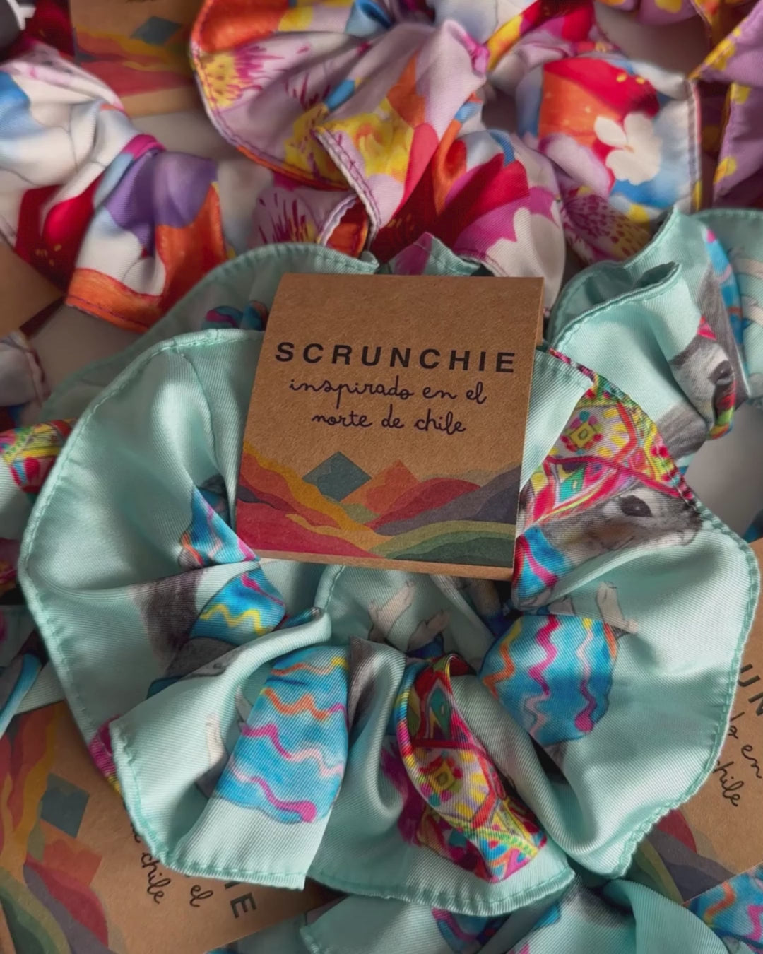 Complementa tu look con nuestros scrunchies de textura suave inspirados en la belleza del Norte de Chile.