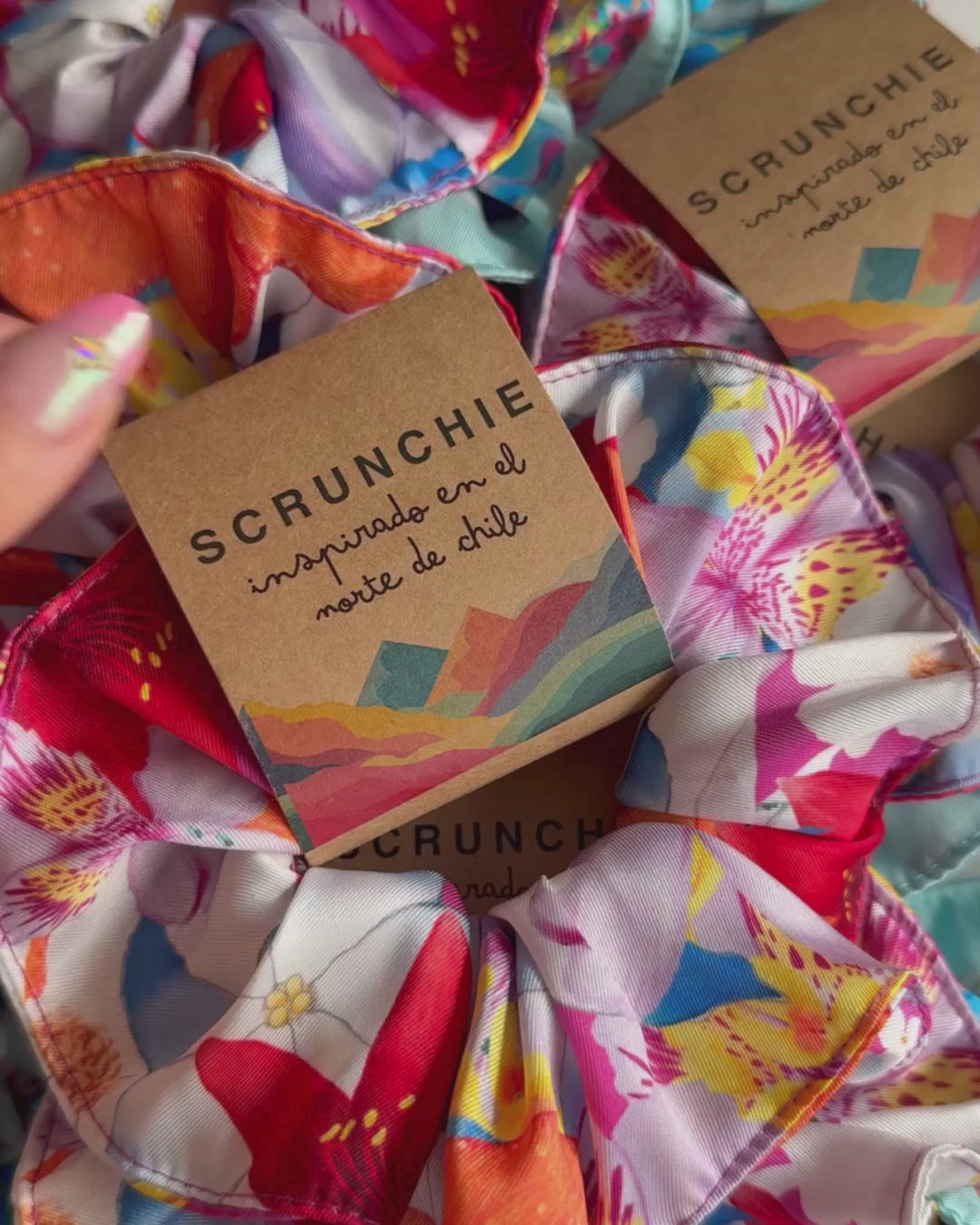 Complementa tu look con nuestros scrunchies de textura suave inspirados en la belleza del Norte de Chile.
